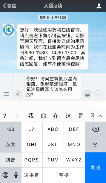 2.点击左下角小键盘按钮,输入您的用药问题(文字描述、图片和文档均可)。