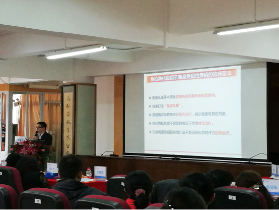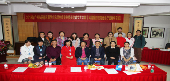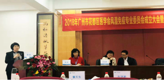 2018年11月25日, 广州市花都区风湿免疫专业委员会在我院成立,同日召开了首届风湿免疫学学术会议。会议邀请了中华医学会风湿病学会副主委黄慈波教授及国家级重点专科中山大学附属第三医院古洁若教授进行了重要讲话和专题演讲,还邀请了国内风湿免疫专科著名专家学者进行了专题讲座。