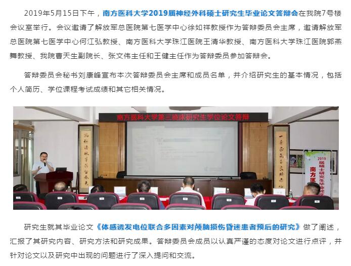 我院2019届神经外科硕士研究生毕业论文答辩会完满结束