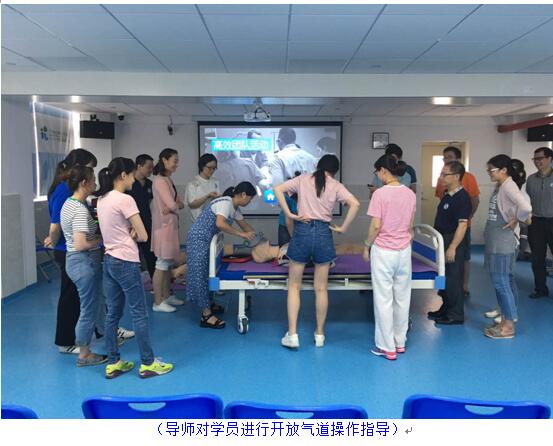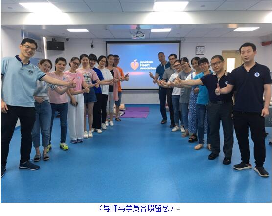 学员在4.5小时的标准化培训和考核中,在导师的指导下,进行了成人及婴儿心肺复苏(cardiopulmonary resuscitation,CPR)及气道梗阻管理的 学习,包括现场安全与患者评估、启动紧急医疗服务、高质量的胸外按压与人工呼吸,以及自动体外除颤器(Automatic External Defibrillator,AED)的使用。本次培训,严格按照1:6的导师学员比、和1:3的模型学员比安排,坚持小班教学和精品授课。“边看、边学、边练”的手把手教学方式使学员在理论学习的基础上更侧重于技能操作的准确性、抢救流程的合理性,以及团队成员间闭环式沟通的有效性,充分保证了学习的质量和效率。最后学员需经过严格的技能操作及理论笔试考核后才能获取由AHA认证的培训证书。