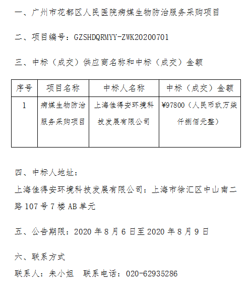广州市花都区人民医院病媒生物防治服务采购项目中标结果公告