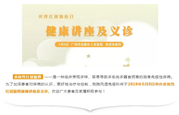 “世界红斑狼疮日”健康讲座及义诊,5月9日邀您参与!