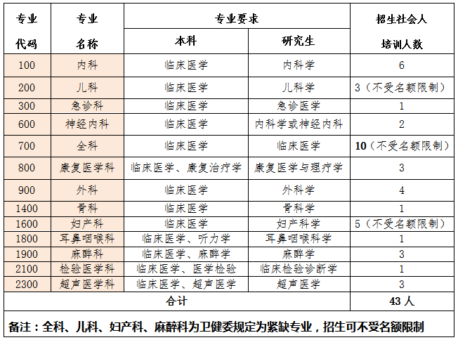 4、考核录用:根据医院考核及个人志愿,确定培训对象,额满为止。未招满额的培训学科,根据报名人员自愿服从调剂培训方向进行重新分配。