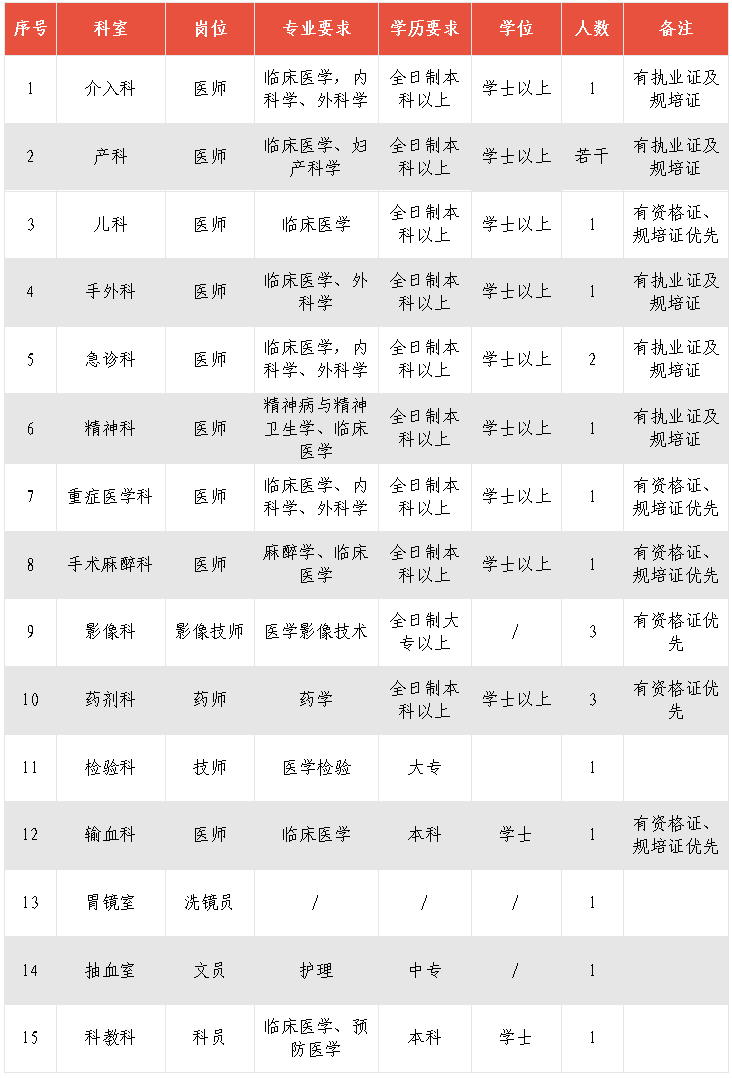 除胃镜室洗镜员及文员外,其他专业均要求具有全日制普通高等教育大专及以上学历的毕业生。